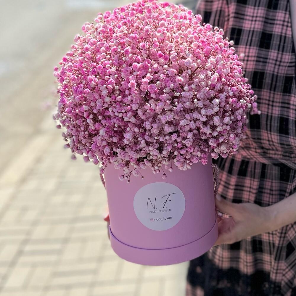 Коробочка с гипсофилой, цвет на момент заказа