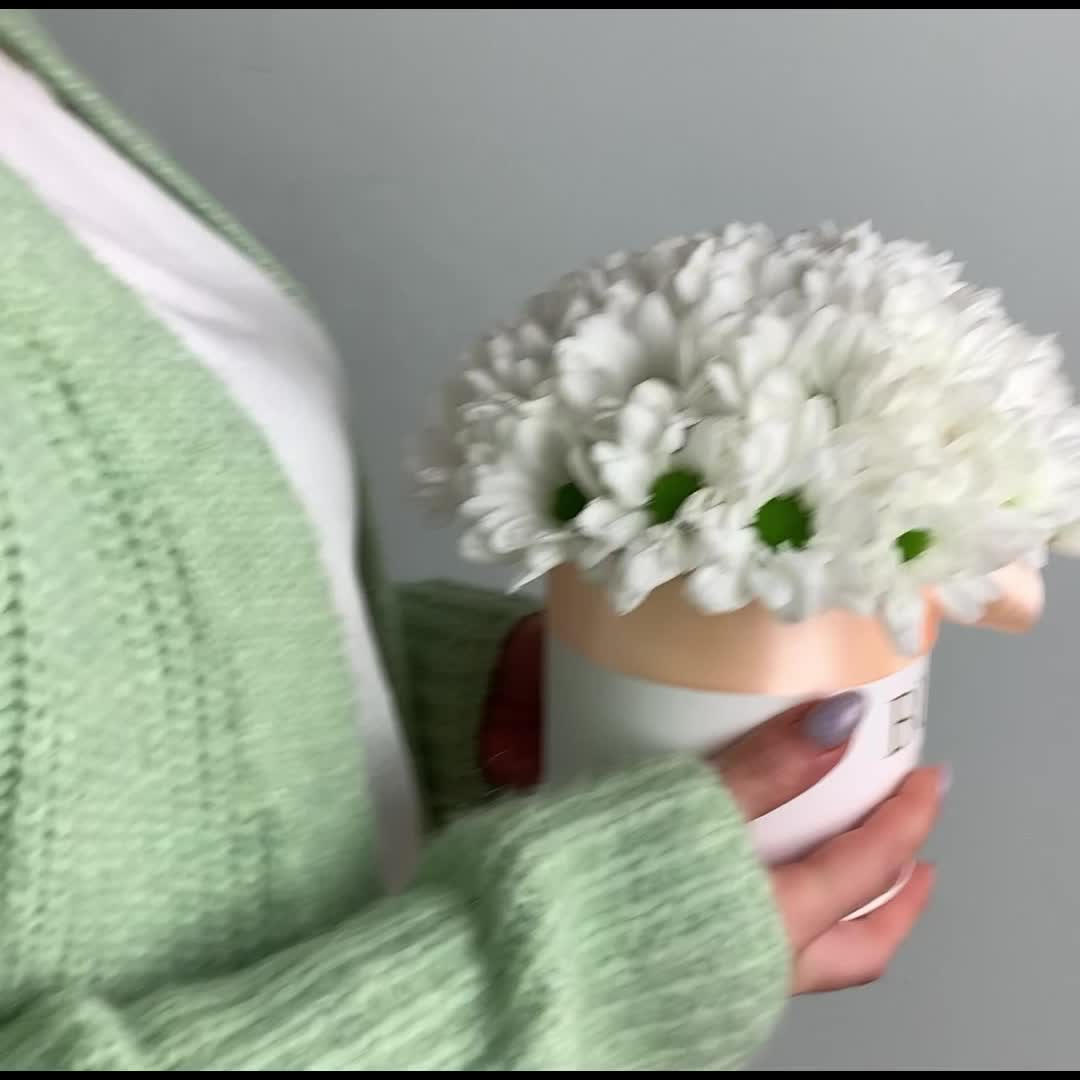 Хризантема кустовая – 5 шт.Лента атласная – 1 шт.Оазис флористический – 1 шт.цилиндр 12 см – 1 шт.