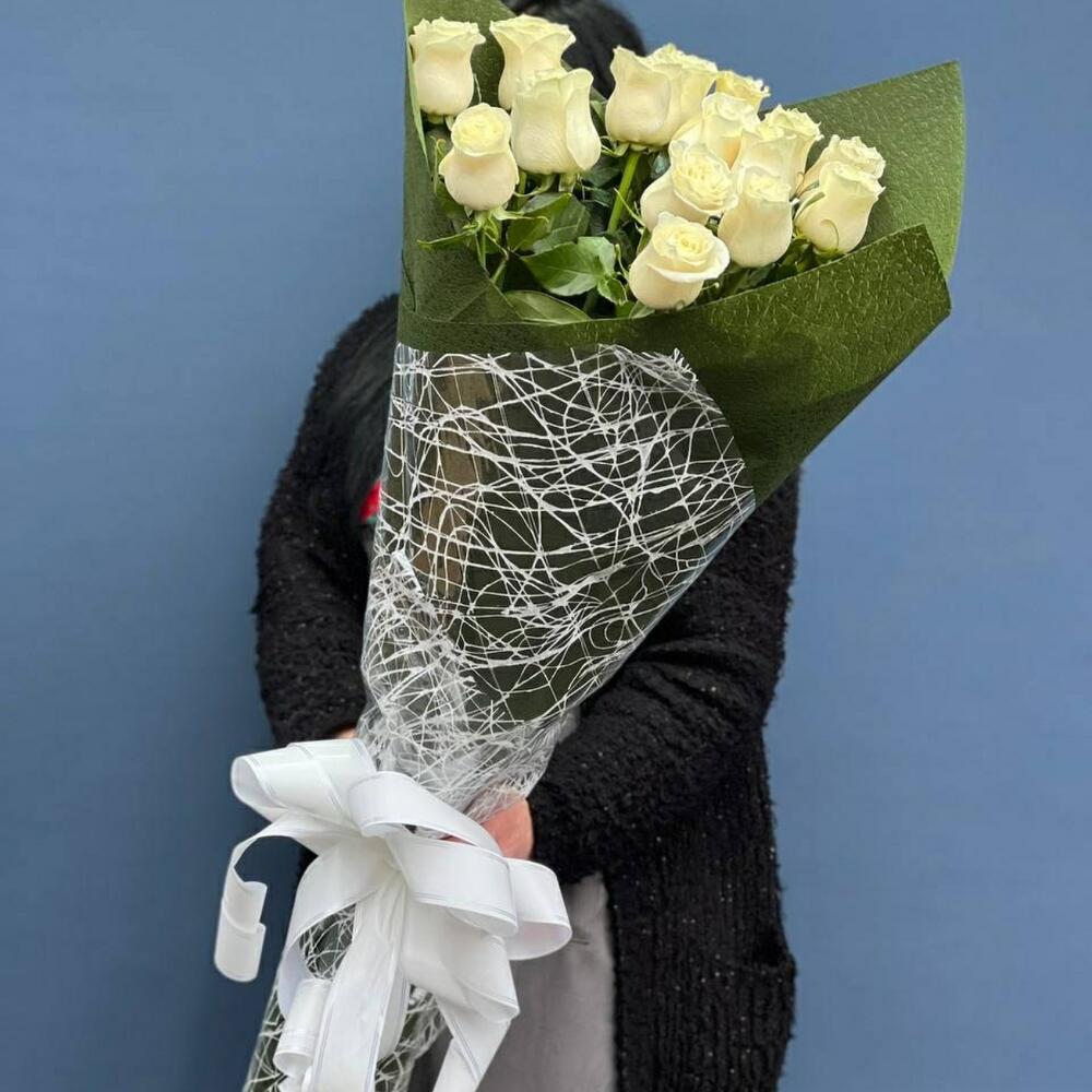 15 ароматных белых роз Мондиаль