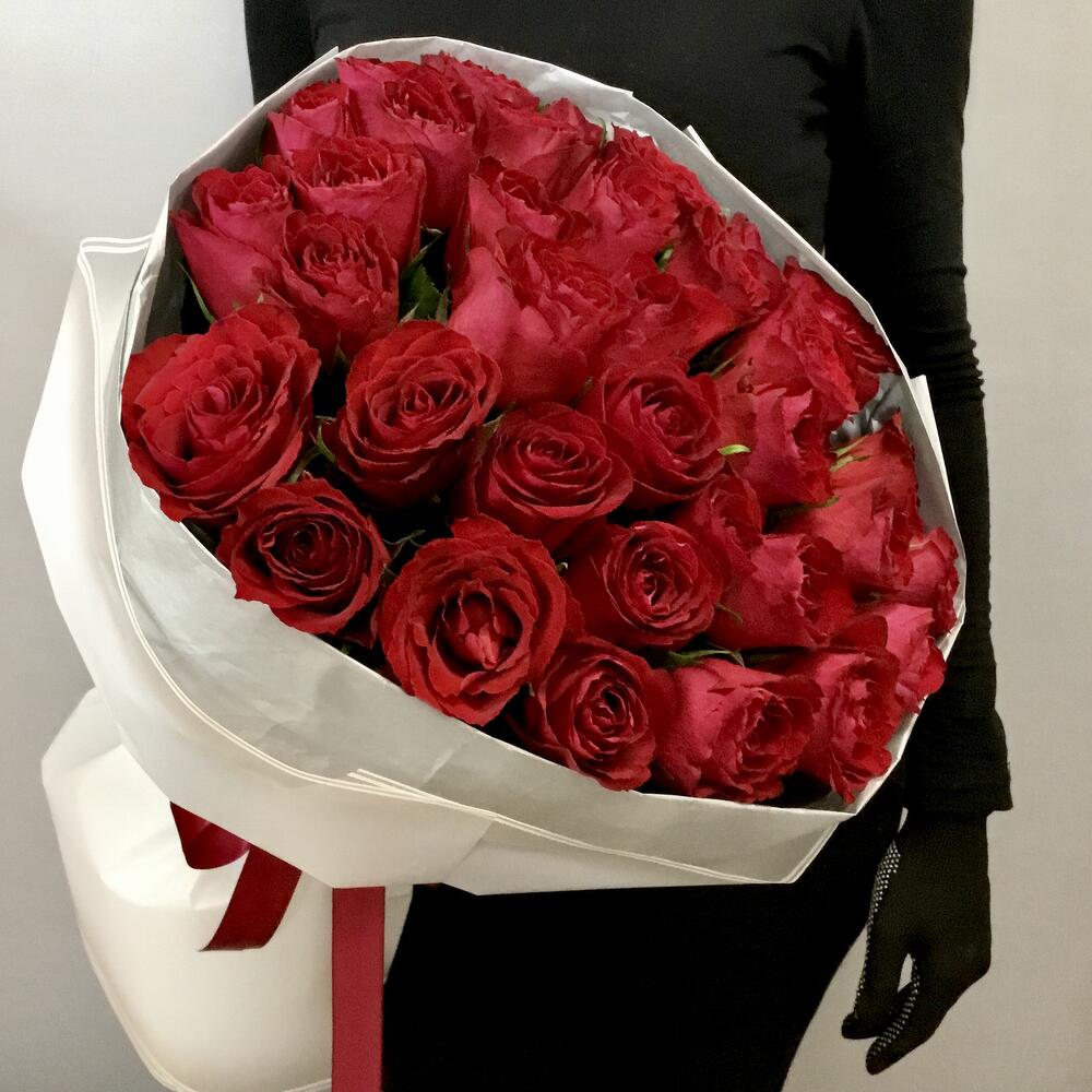 Лента атласная – 1 шт.Тишью – 2 шт.Роза 40 см – 35 шт.Пленка матовая – 2 шт.