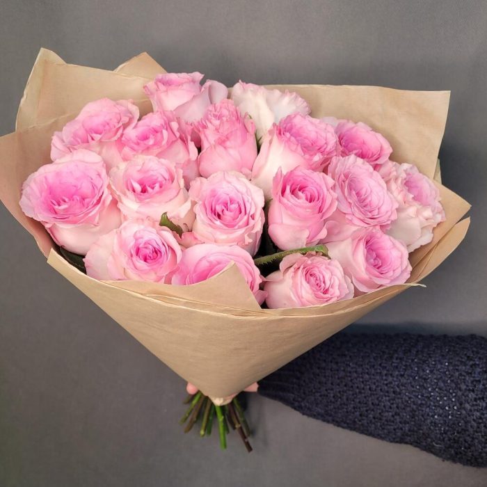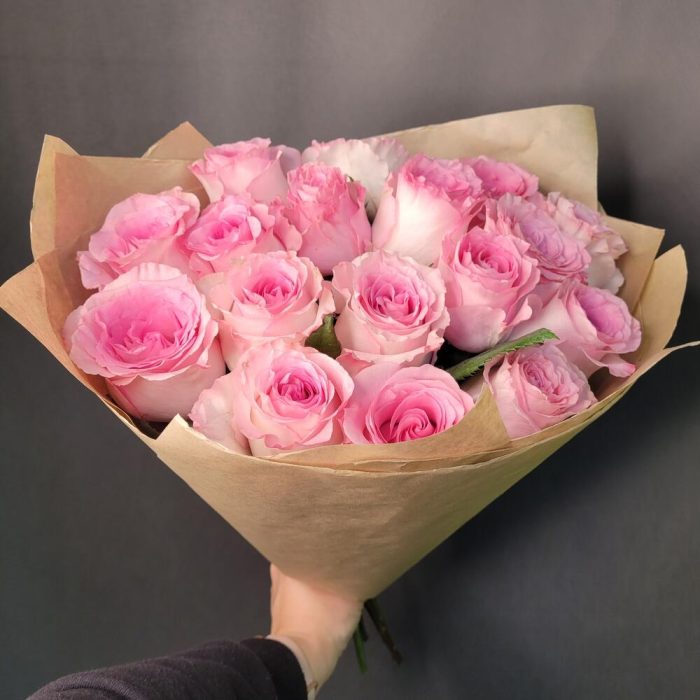 Роза Эквадор – 17 шт.Лента атласная – 1 шт.Крафт – 3 шт.