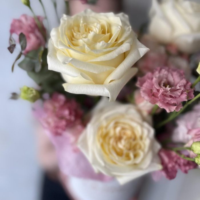 Нежная композиция в шляпной коробке