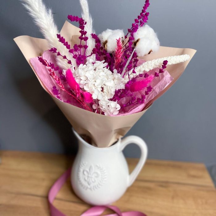 Букет из сухоцветов в лавандовых оттенках с хлопком