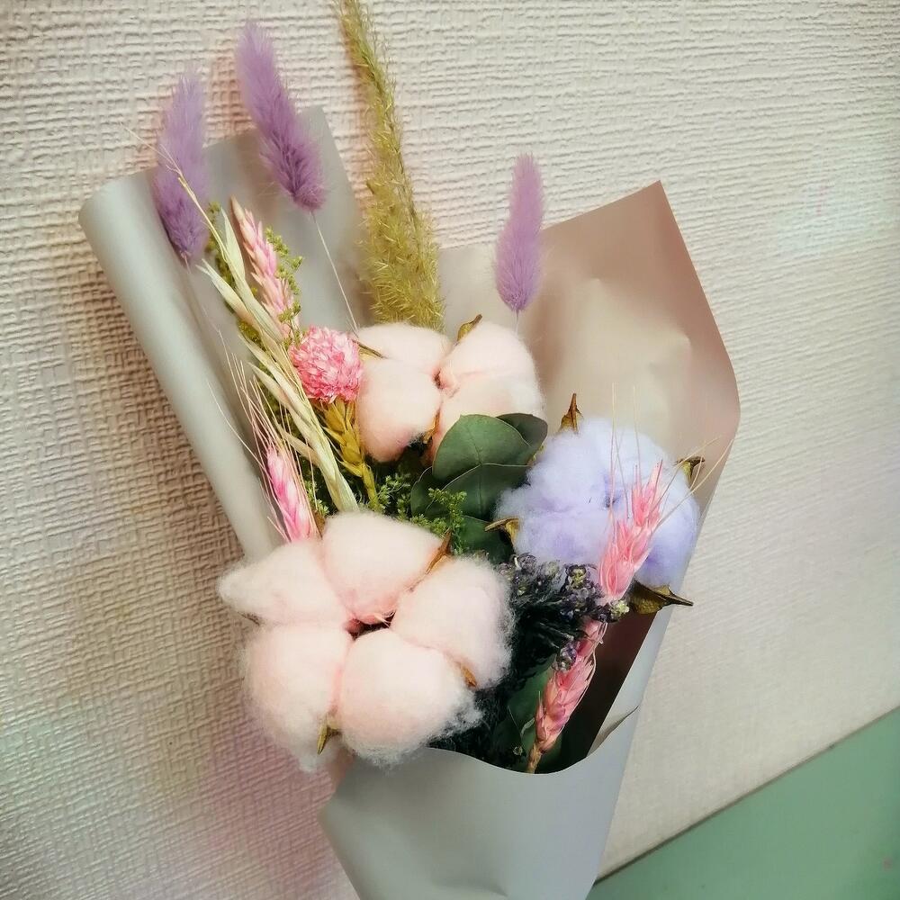 «Лавандовое созвездие» Букет из розы, гвоздики, статица и хлопка
