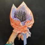 «Лавандовое созвездие» Букет из розы, гвоздики, статица и хлопка