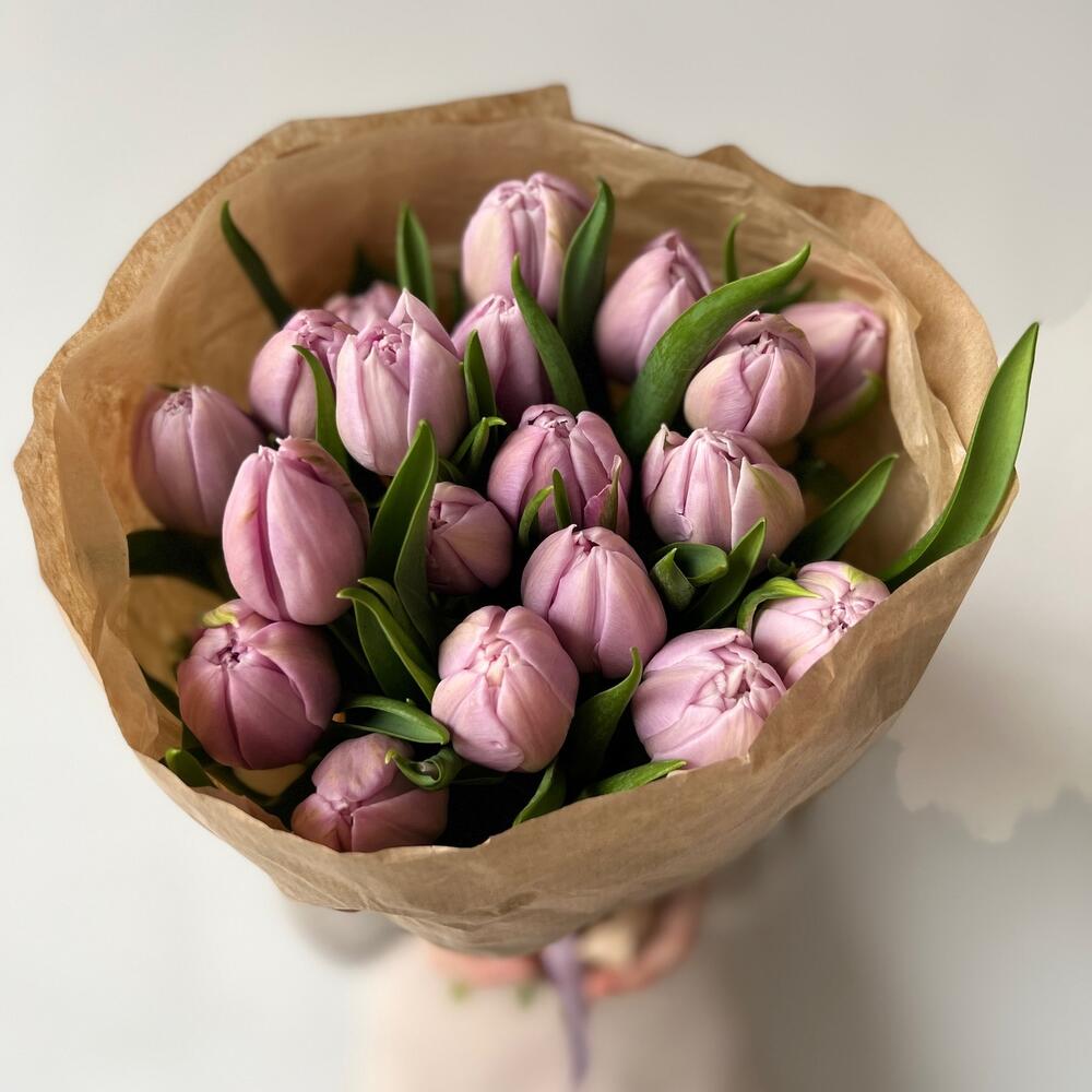 Сиреневые пионовидные тюльпаны в крафте
